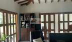 La casa principal tiene un área de 154 m², techo en madera a la vista, cuatro alcobas y dos baños con división en vidrio templado, mueble de almacenamiento y espejo flotante. La alcoba principal incluye vestier. Cocina amplia integral en mármol y madera con isla, comedor independiente, sala de 22 m² y zona de ropas.